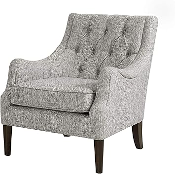 Amazon Com Madison Park Qwen Accent Chairs Birch Hardwood Faux Linen Armchair Modern Classic Style Diamond Tufted Living Room Sofa Furniture Bedside Lounger Grey Home Kitchen